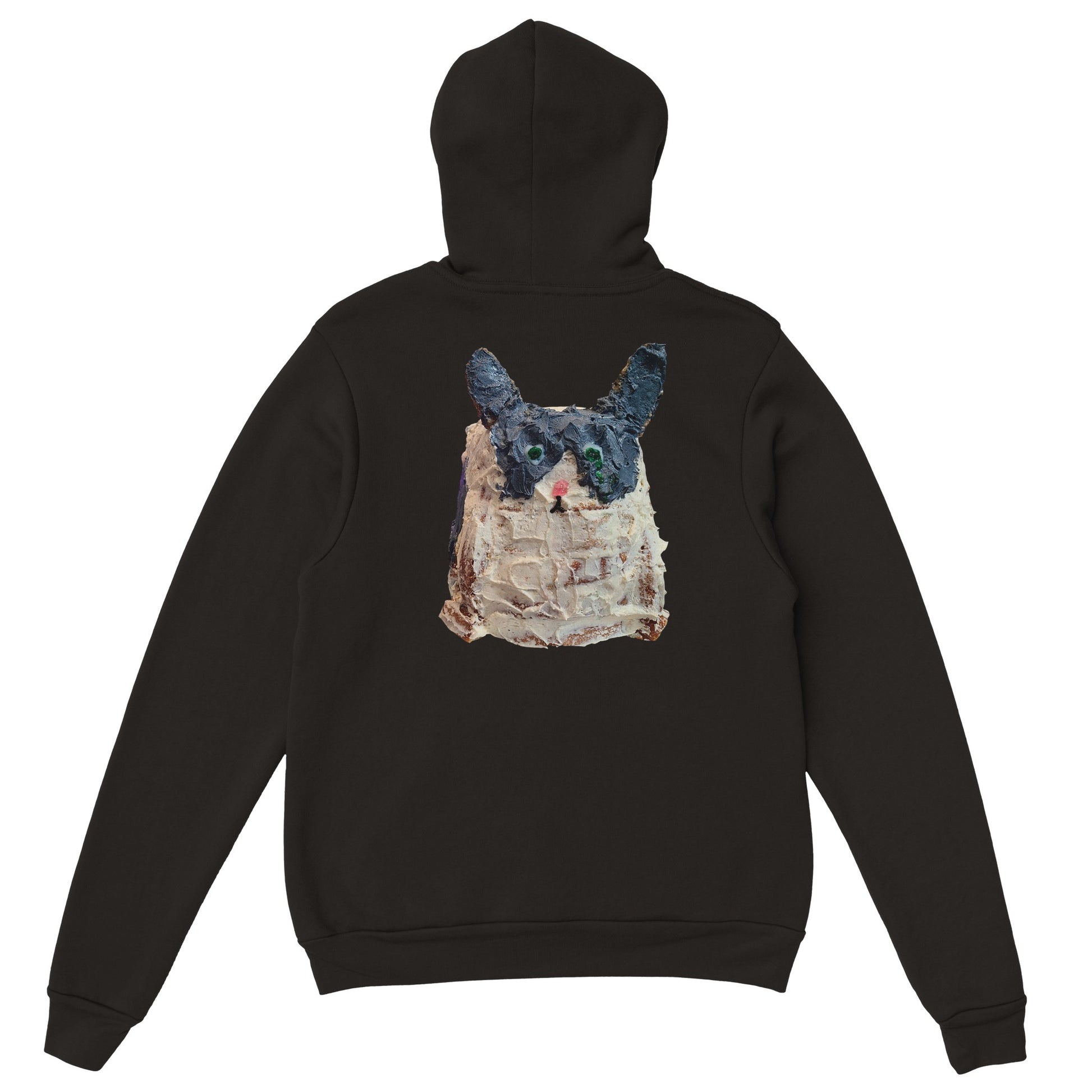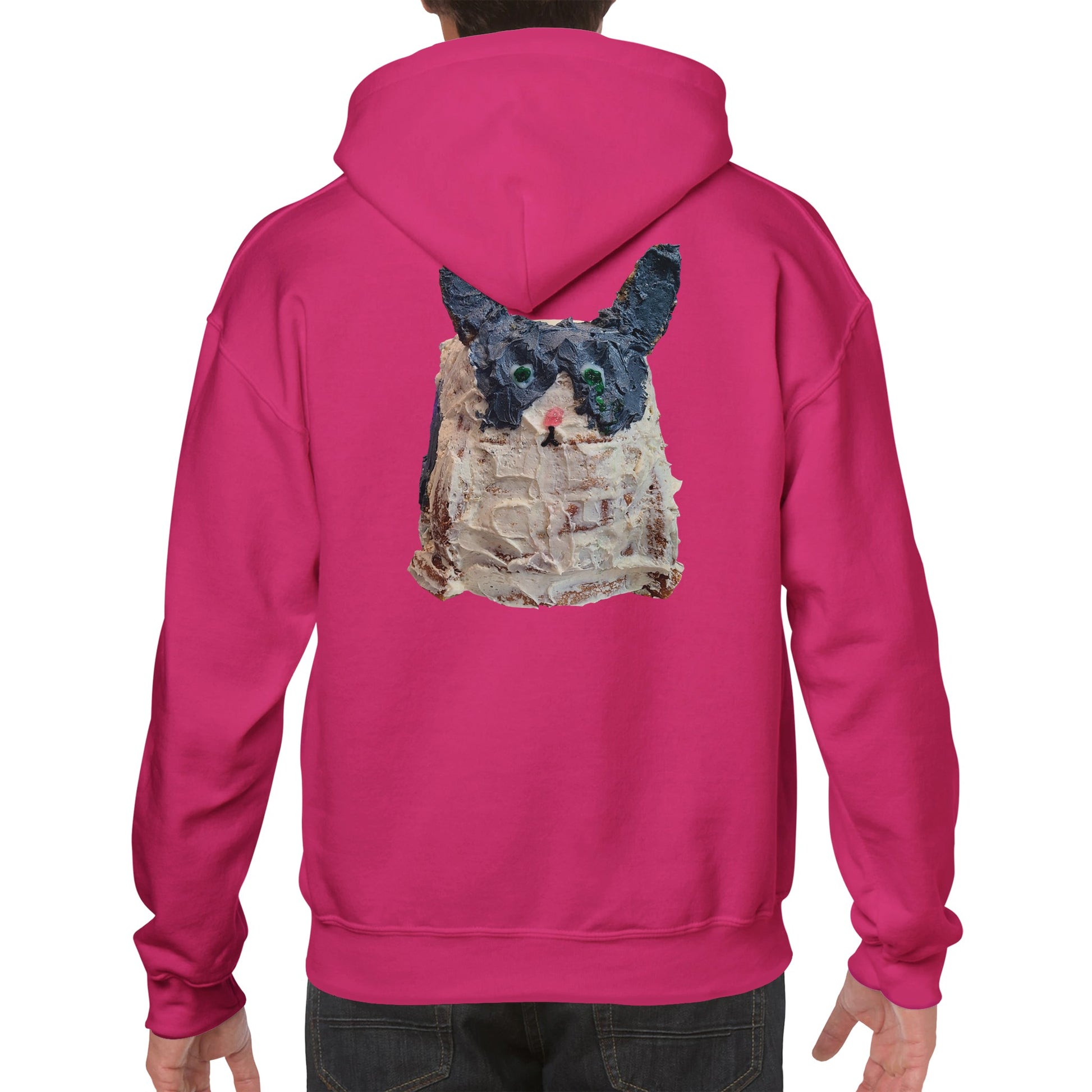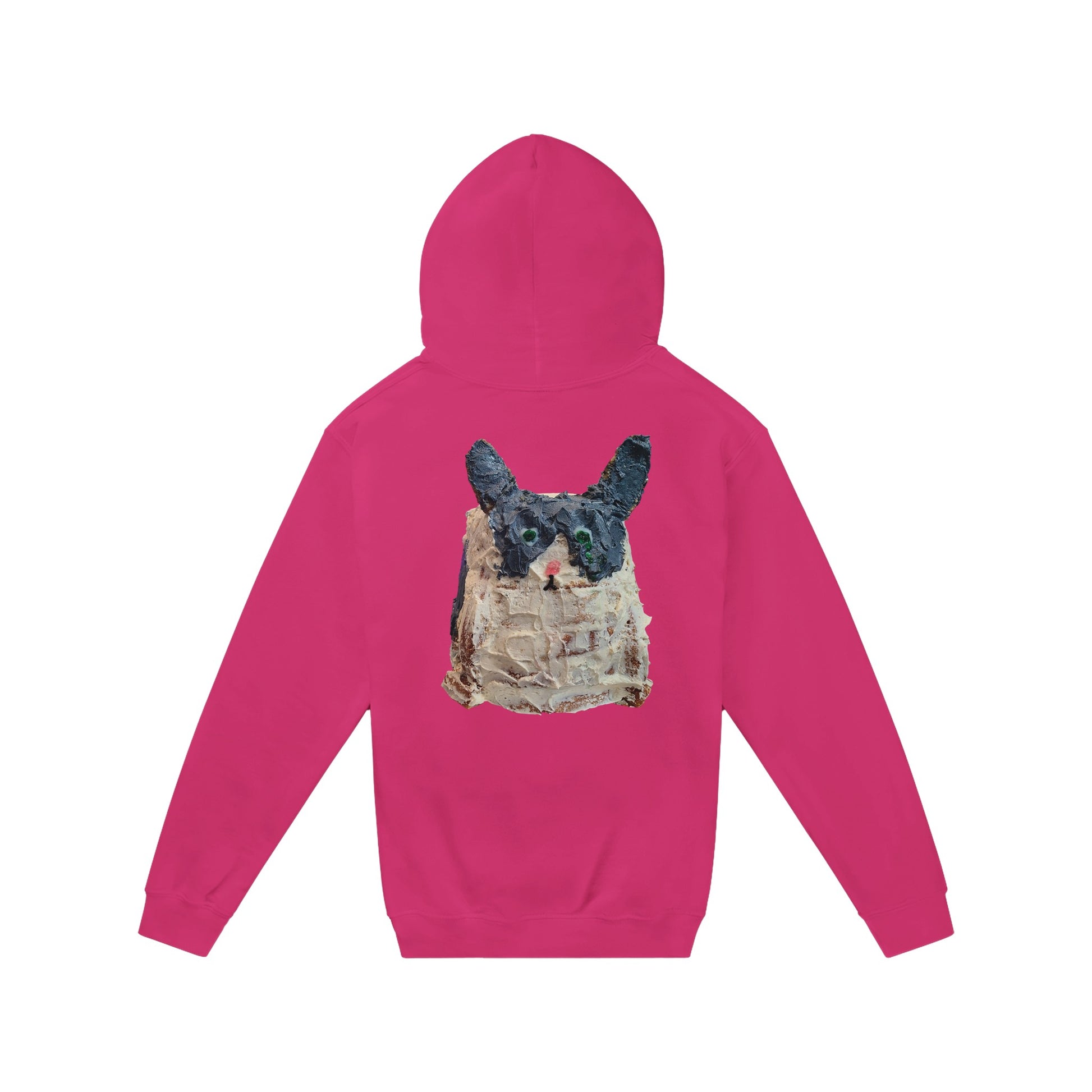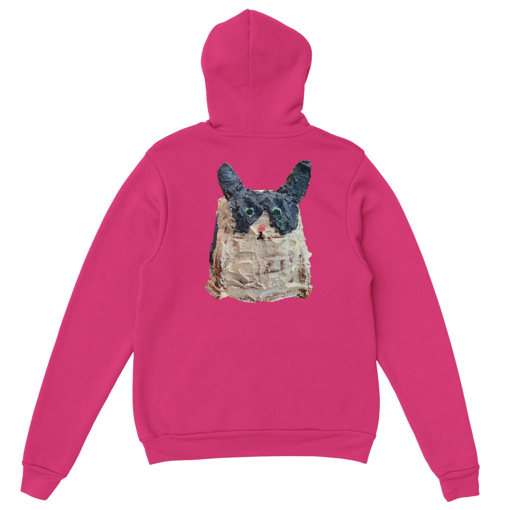 To celebrate our 100th episode, we made a cake, and now you can wear a piece of history. On the front you got the classic Chad face, and on the back, you've got that glorious cake. Oh...but it's a hoodie.